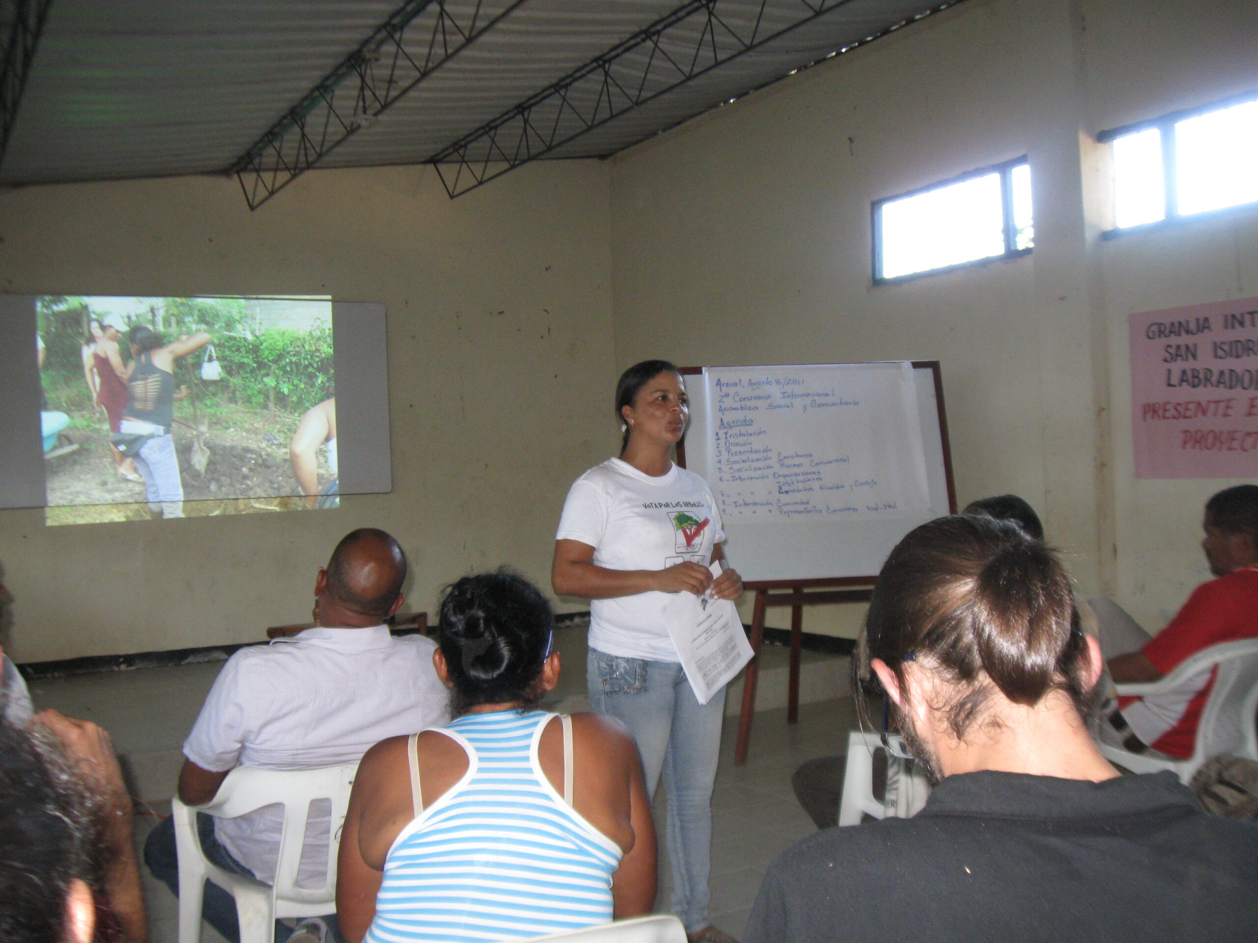 Cruzamos hacia el corregimiento de Caimital. Una lideresa de unos 40 años nos cuenta cómo han defendido la serranía de San Lucas, también conocida como “La Teta de San Lucas”, “una rica montaña de la cordillera de los Andes de la que todo el mundo se cree dueño”, dice con enojo. Su voz era vigoroza, sus palabras aguerridas. Decenas de niños rodean la reunión. Uno me dice al oído que mejor deje de grabar, que en la reunión hay dos paramilitares (algunos de ellos muy participativos).