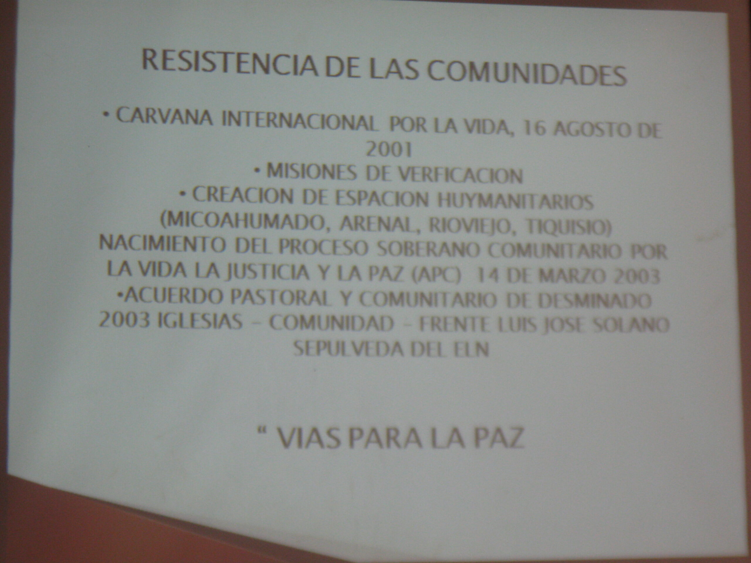 El ELN acudió al llamado de la comunidad y retiró las minas, normalizando así el tránsito de alimentos que ya escaseaba. Los campesinos nombraron una comisión que, incluso en medio de los combates, procuraba ‘humanizar’ el conflicto en la zona. Realizaron la Asamblea Popular Constituyente en 2002 con 85 delegados de la comunidad, iniciativa autónoma de paz que aún permanece, demostrando que el diálogo es la mejor arma para terminar el conflicto. También generaron alternativas a los cultivos de coca como la siembra de frijol y la creación de una fábrica de café orgánico. Este proceso, compuesto por unas 400 familias, promueve el diálogo con líderes de la Comisión de Interlocución del sur de Bolívar, el Congreso de los Pueblos y La Cumbre Agraria, Campesina, Étnica y Popular.
