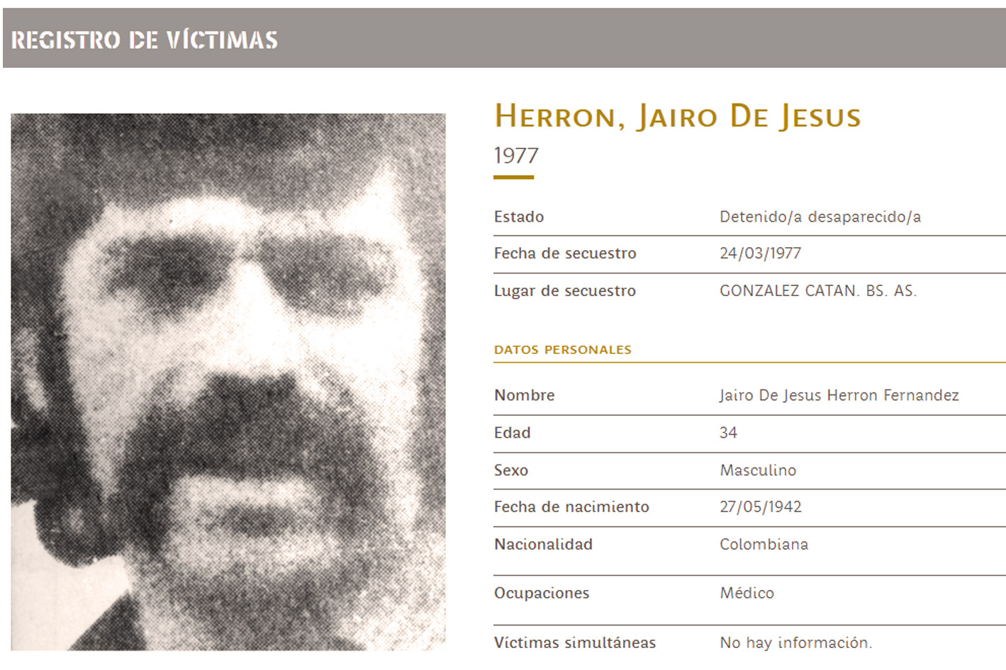 Álvaro Herrera León. La Palma, Cundinamarca. Militante de la Juventud Universitaria Peronista (Montoneros). 23 años.