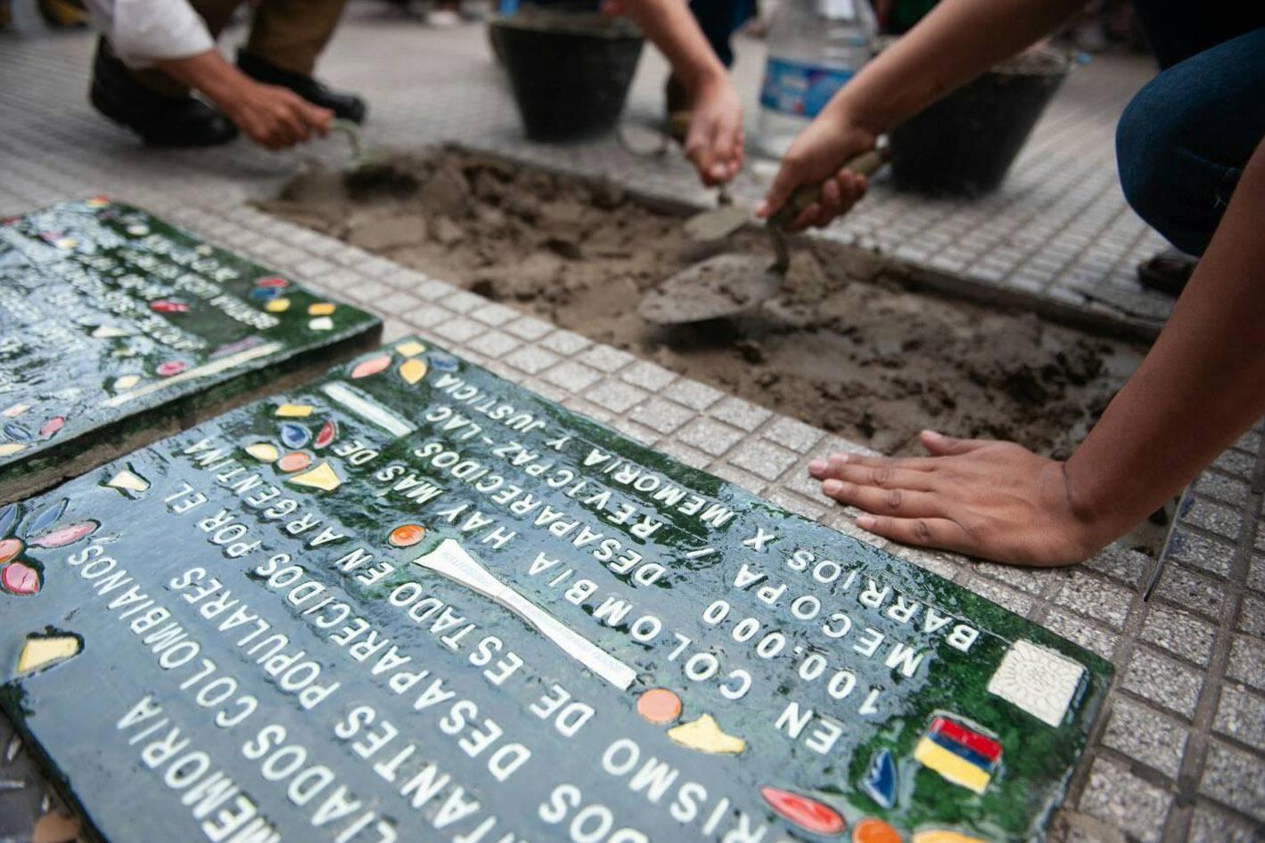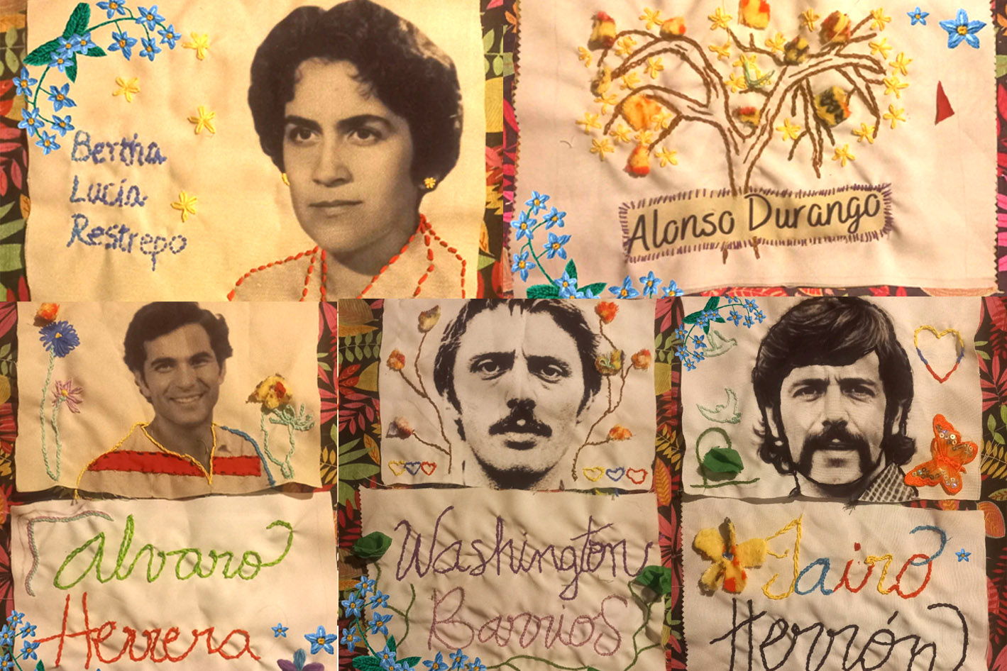 Sobre la tela se ven los nombres bordados, y también las fotos. Allí lucen las puntadas que decoran y resaltan cada imagen. Trazos coloridos que dan vida, restituyen identidades, construyen memoria. La labor del Colectivo Bordando Luchas de Argentina sumó, este pasado 24 de marzo, el aporte de colombianas y colombianos que quisieron rescatar la presencia de cinco compatriotas víctimas del terrorismo de Estado en el país del sur. La de las bordadoras por la memoria es una práctica extendida en Colombia, donde tuvo y aún tiene su sentido reparador y reivindicatorio. Las imágenes bordadas en memoria de Bertha, Álvaro, Jairo, Alonso y Washington fueron publicadas por GV + Argentina.