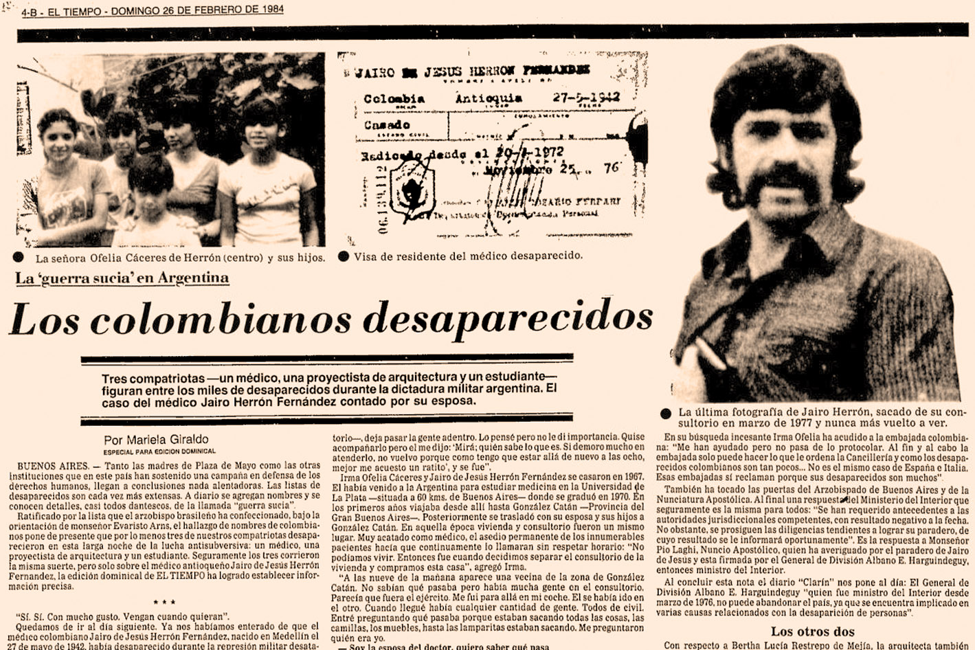 En ese contexto, el pueblo colombiano puede conocer lo que pasó con sus ciudadanos que, con generosidad internacionalista, se sumaron a las luchas de un país hermano y cayeron víctimas de la represión. Las historias de vida de Bertha, Álvaro, Jairo, Alonso y Washington fueron recuperadas por el periodista Andrés Arroyave en este completo reportaje. Con base en esa investigación, en repercusiones de periódicos de la época y en un proyecto de reconstrucción de la Memoria de estudiantes de La Matanza, presentamos, a modo de homenaje y de aliento para nuevas luchas, esas historias: